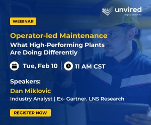 | | | | | | | Sponsored | | From Unvired Operators often detect early equipment issues, but paper-based processes and disconnected systems prevent timely action. In this webinar, Ex-Gartner analyst Dan Miklovic explains how leading plants digitize operator rounds, inspections, and CILT tasks to improve autonomous maintenance, speed fault response, and reduce downtime—without complex IT or maintenance projects. Includes real-world examples and a live demo of an operator-first tool. |