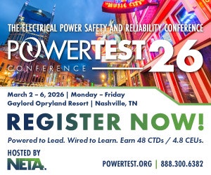 | | | | Sponsored | | From NETA Hosted by NETA – International Electrical Testing Association, PowerTest is the premier electrical power safety & reliability conference. Join the largest annual gathering of experts managing electrical power systems. Earn CEUs & CTDs. Don’t wait — register now and see you in Nashville! |